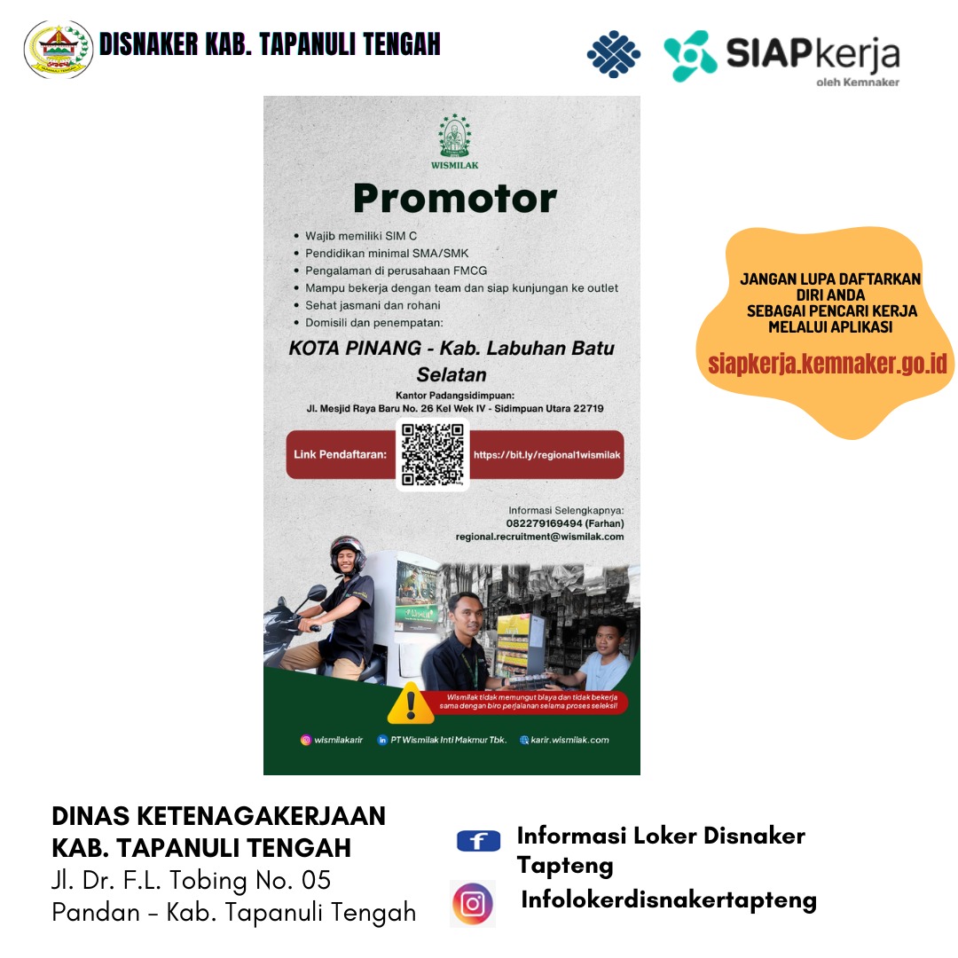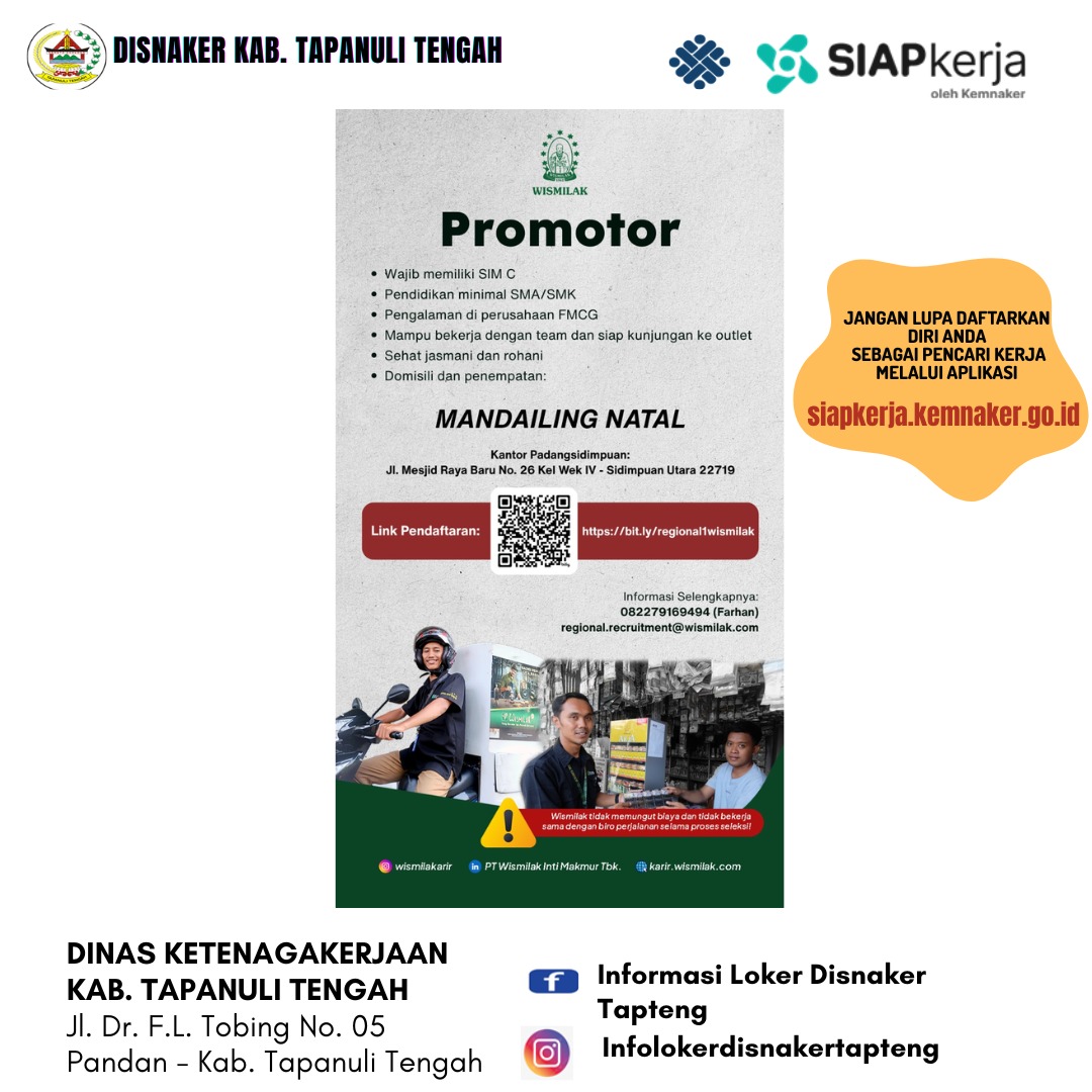 PT. Wismilak Inti Makmur, Tbk membuka lowongan pekerjaan sebagai PROMOTOR untuk ditempatkan di daerah Sibolga, Mandailing Natal, Padangsidimpuan, Kota Pinang-Kab. Labuhan Batu Selatan.