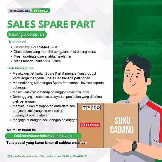 NB : bagi pelamar yg dinyatakan lulus seleksi administrasi dan interview, bersedia untuk di training sebelum bekerja selama 3-5 hari (tergantung keterampilan kandidat), lokasi training di Kota Medan.