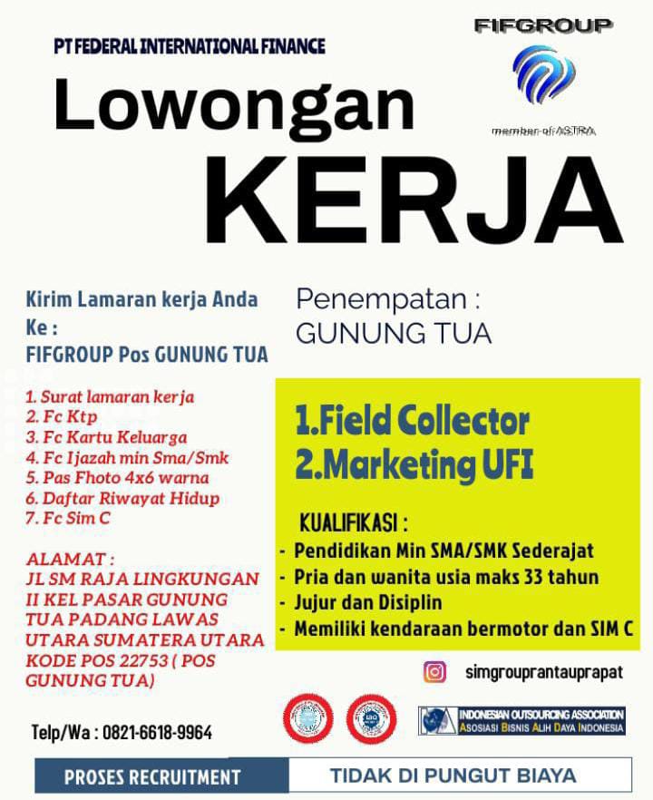 - Pendidikan Minimal SMA / SMK Sederajat