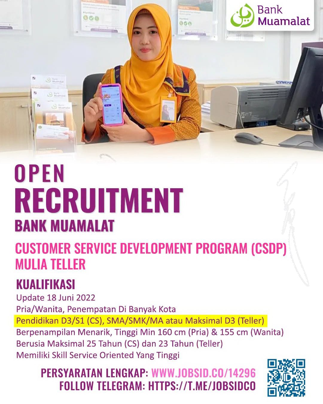 Open Rekruitmen Bank Muamalat (CSDP), Mulia Teller