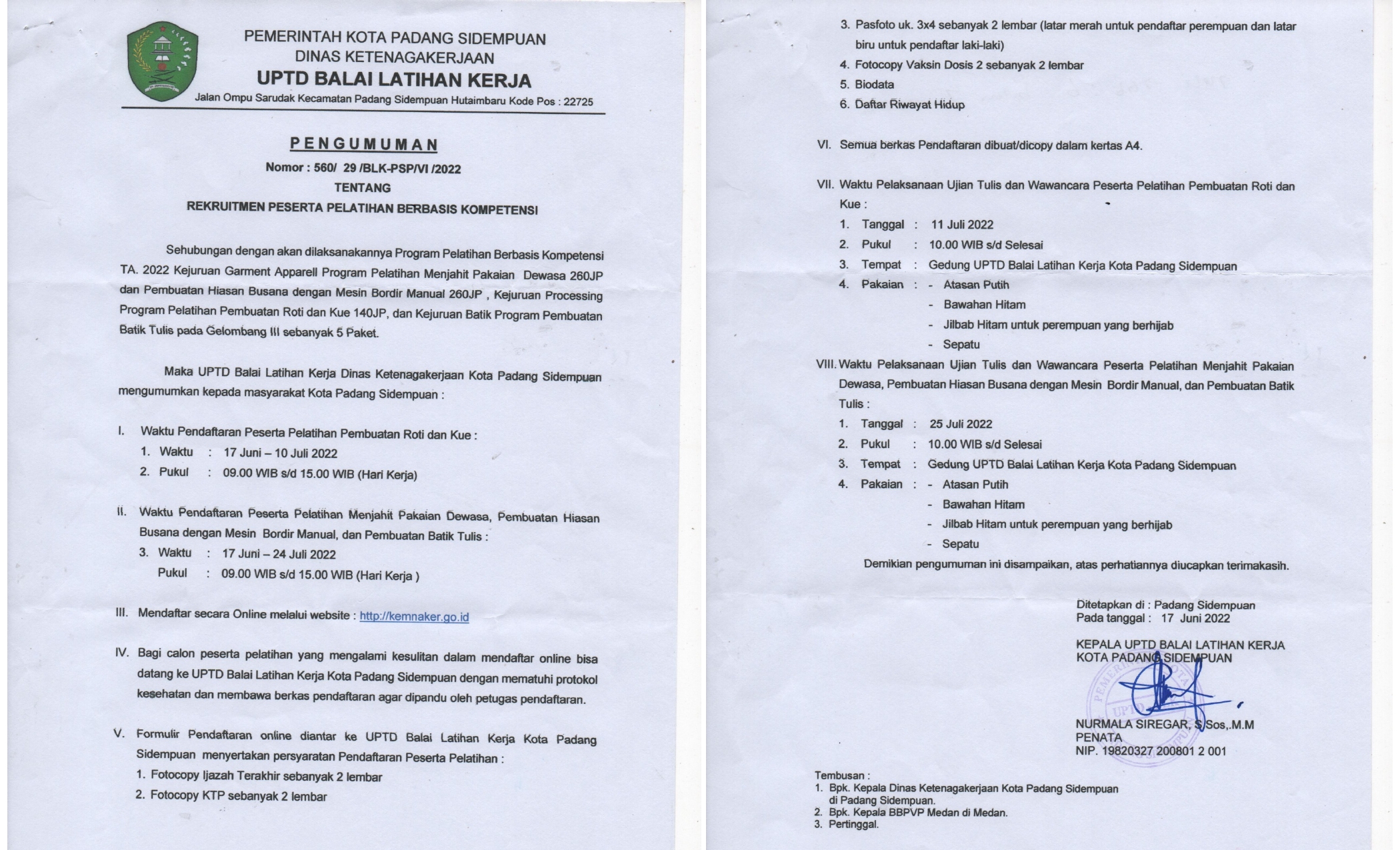 UPTD BALAI LATIHAN KERJA KOTA PADANGSIDIMPUAN