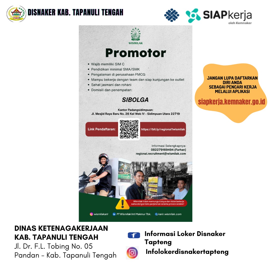 PT. Wismilak Inti Makmur, Tbk membuka lowongan pekerjaan sebagai PROMOTOR untuk ditempatkan di daerah Sibolga, Mandailing Natal, Padangsidimpuan, Kota Pinang-Kab. Labuhan Batu Selatan.